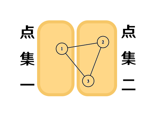 所谓二分图,主打一个二分。指的是如果一个图的点可以分为两个不重合的点集 $U,V$ ,且只有 $U,V$ 两个点集间有点连通,同一个点集内没有边连通的图。