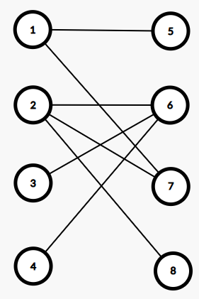 - 完全匹配:有至少一个点集的店被匹配完了。例图就是一个完全匹配。